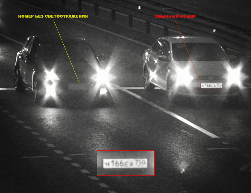 03. В номерах без светоотражения - светоотражающий слой поглощает любой источник света, поэтому камеры не могут распознать номер.